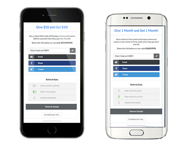 Referral SaaSquatch recognizes the importance of interacting efficiently with users on mobile devices. We provide options for connecting with your users through a wide range of mobile channels. Our mobile-responsive widget can easily be embedded into any mobile app to provide a one-stop-shop for your users to participate in your referral program.