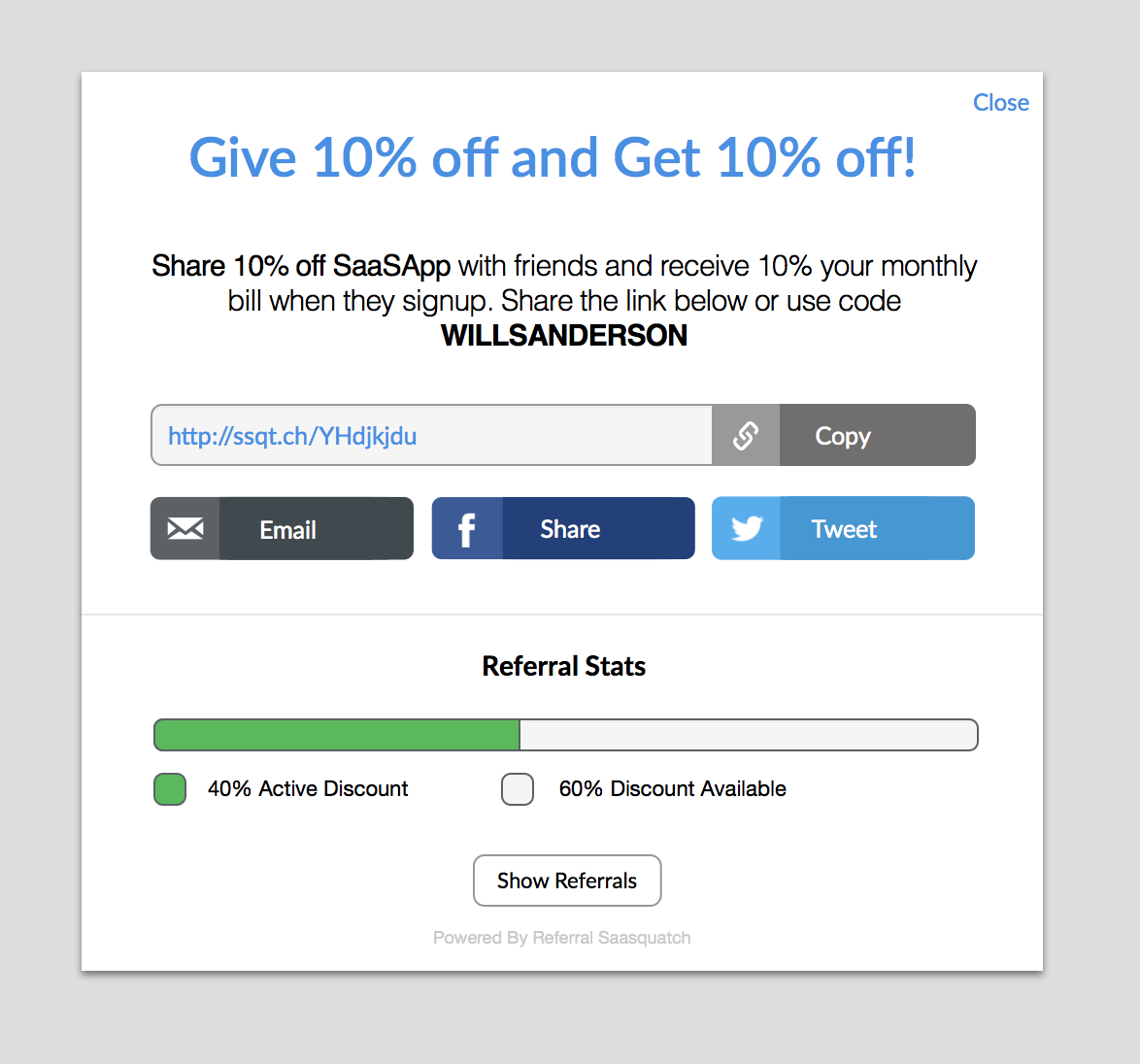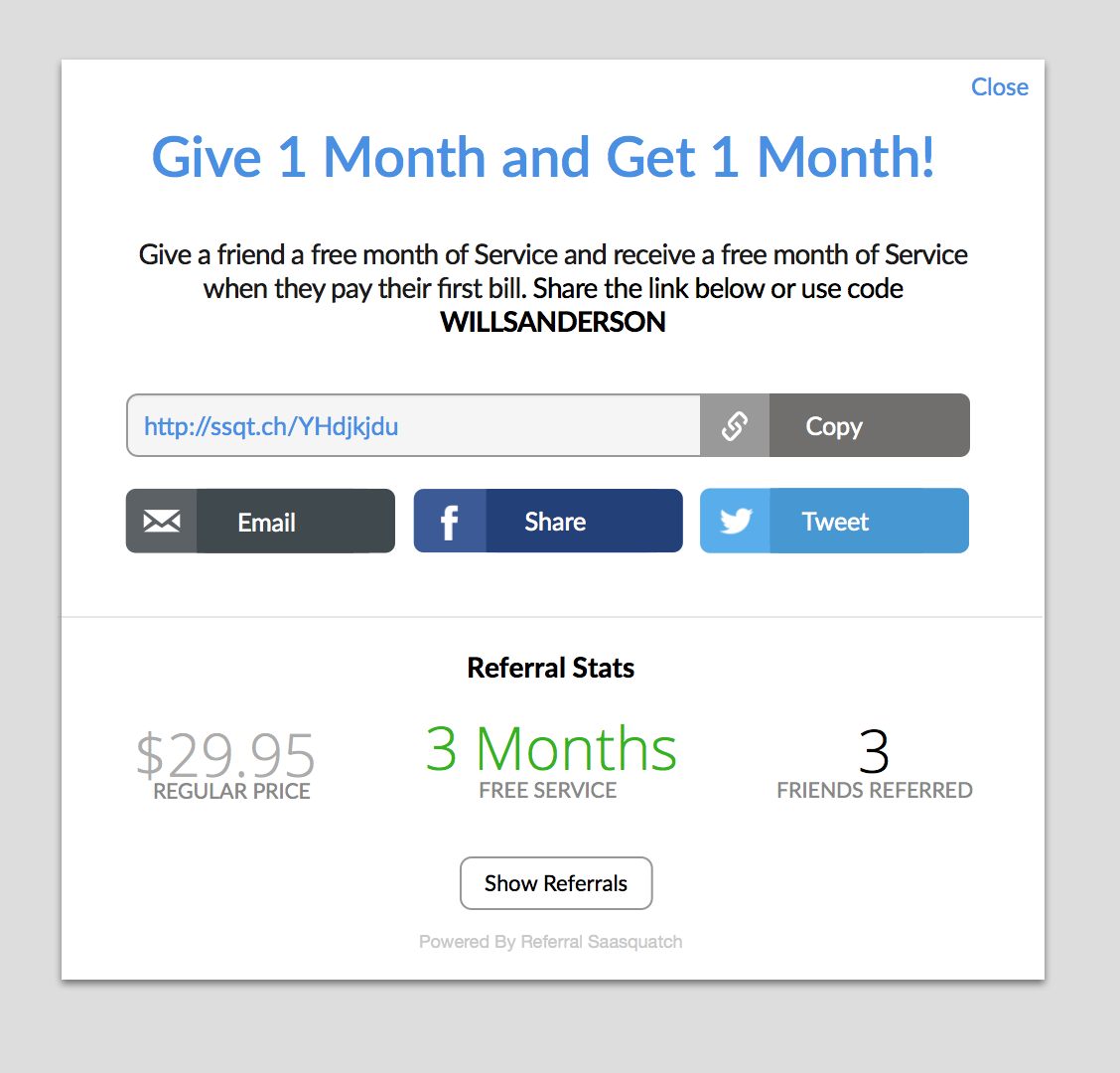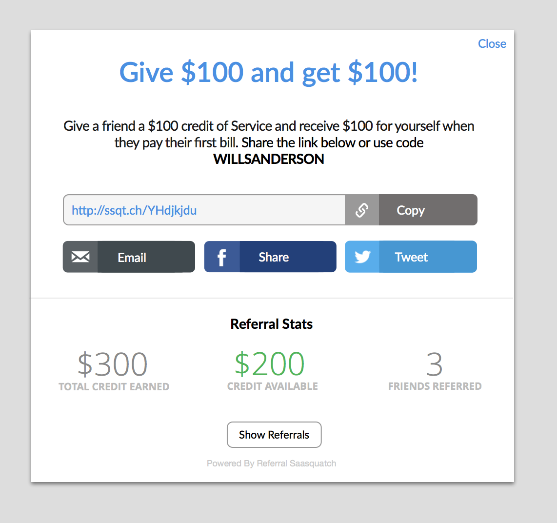 You can use one of the Referral SaaSquatch standard themes for your referral program. Standard themes provide simple but stylish defaults for your referral program pieces.