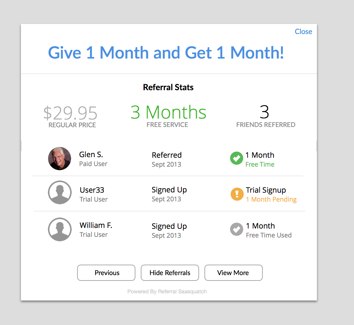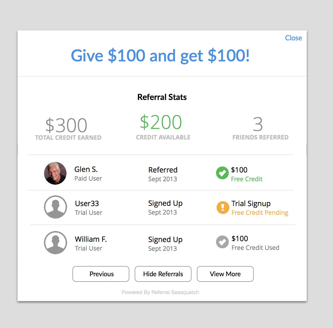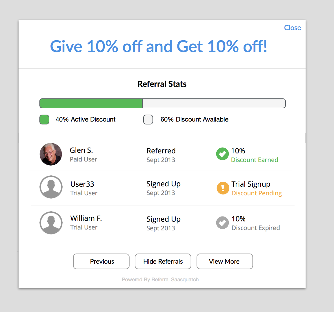 You can use one of the Referral SaaSquatch standard themes for your referral program. Standard themes provide simple but stylish defaults for your referral program pieces.